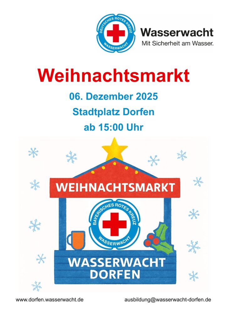 Die Wasserwacht Ortsgruppe Dorfen blickt auf eine äußerst erfolgreiche Teilnahme am diesjährigen Dorfener Weihnachtsmarkt zurück. Am Samstag, den 6. Dezember 2025, waren wir mit unserer Wechselbude auf dem Marktplatz vertreten und durften zahlreiche Besucherinnen und Besucher begrüßen.